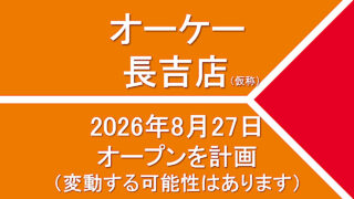 新店・開業 オーケー長吉店(仮称)2026年8月27日オープンを計画|大阪府大阪市 「(仮称)オーケー長吉店」が2026年8月27日(木)オープンを計画しています。大阪府大阪市東淀川区下新庄四丁目146番2。計画では、店舗面積:1,502平方メートル、駐車場:46台、駐輪場:74台(うち原付4台)、営業時間:午前8時30分-午後9時30分。 2026.02.01 新店・開業